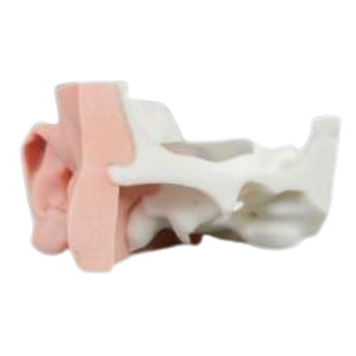 [1] 适用于耳内镜下多种耳部手术的模拟操作训练,用于解剖教学、病例示教、临床训练、手术规划、器械操作训练等。[2] 通过医学影像数据进行重建、设计,高精度还原人体耳部结构(包括外耳廓、外耳道、鼓膜、听小骨、耳蜗、听神经等)。[3] 采用软硬结合多材料3D打印,模拟耳部不同组织的真实质感。[4] 设置内耳替换模块,便于观察内部解剖结构,拆卸、替换更方便。[5] 定制化病例模型,模拟不同病变,可满足不同训练需求。