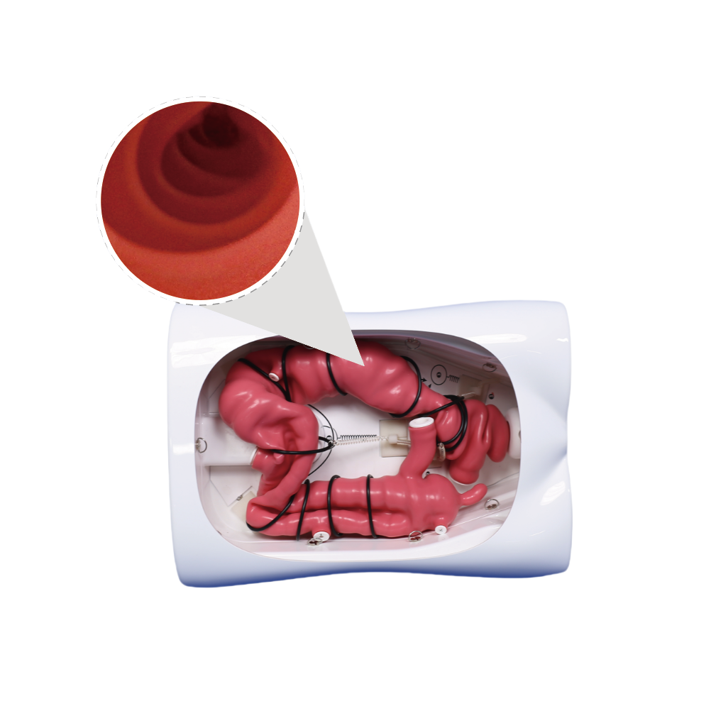 结肠镜训练模型产品组成部分结肠(软质硅胶)、底座与外壳(树脂)产品功能结肠镜检查、上消化道活检、息肉切除术产品特点基于成人下消化道 CT 数据,设计并制作了软质硅凝胶(模型)。其中升结肠、横结肠、降结肠模型与人体解剖结构高度相似,手术操作手感真实。可更换模型组件:模拟息肉